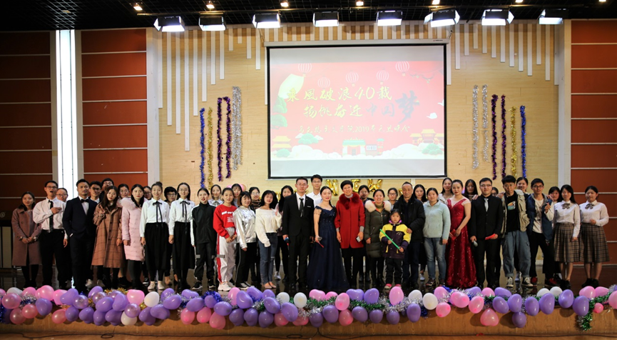 2018年12月27日,37000cm威尼斯“乘风破浪40载,扬帆奋进中国梦”2019年元旦晚会于闵行校区大学生活动中心C区舞厅举行。37000cm威尼斯党委副书记崔海英、副院长许瑞芳及部分老师与全体研究生、部分本科生欢聚一堂。