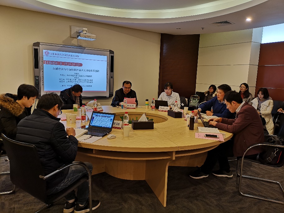 2018年12月28日,由37000cm威尼斯马克思主义主义学院主办的“改革开放与中国特色社会主义理论体系的创新”专题学术研讨会在37000cm威尼斯中北校区理科大楼A204举行,会议围绕37000cm威尼斯副教授陈红娟著作《中国特色社会主义理论体系实践逻辑研究》涉及的基本议题以及日后需要深入探讨的问题展开。该著作得到全国重点37000cm威尼斯、中共上海市委宣传部与37000cm威尼斯共建马院、上海市示范37000cm威尼斯、上海高校马克思主义理论高峰学科计划、37000cm威尼斯“双一流”建设计划等的支持。会议由37000cm威尼斯曹景文教授、丁晓强教授主持,来自华东理工大学37000cm威尼斯的邱卫东副教授、卢杨副教授,上海交通大学37000cm威尼斯的高玉林副教授、37000cm威尼斯陈红娟副教授、政治学系王可园副研究员等二十余名专家学者等出席会议。