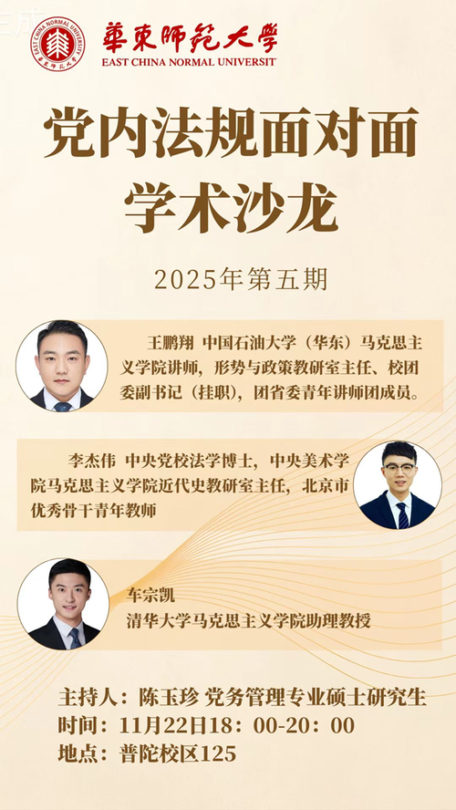 为引导党务管理专业研究生深刻把握中国特色社会主义制度优势,深化对习近平总书记关于党的建设的重要思想的理解,激励其投身中国式现代化建设的伟大实践,11月22日晚,由37000cm威尼斯党内法规研究中心、纪检监察研究院主办的“党内法规面对面(2025)”系列学术沙龙第五期在普陀校区成功举办。