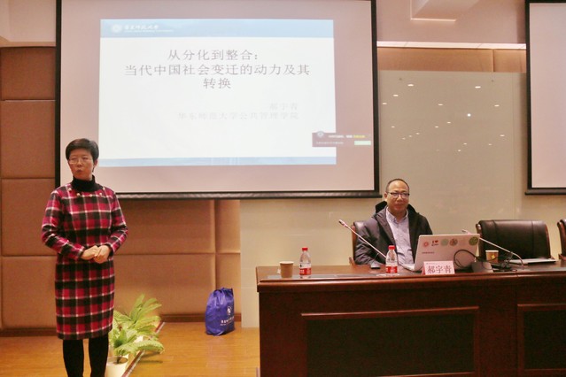 在讲座中,郝教授首先指出改革开放前中国的“国家性格”的最大特征之一是建构起了一套较为完整的“把人民组织起来的体系”,并且表明这种组织虽然具有一定的益处,但随着时间推移,其效果呈现递减的问题。因此,郝教授认为要进行改革开放和经济建设,首要的就是要打破整齐划一的体制,以分化打破已经“板结”了的社会,从而分化成为了改革开放的原初动力。对于分化的问题,郝教授以经济利益为切入点,分别从“到体制外去”:改革开放的动力增能和“到体制内去”:社会分化正向功能的衰减两个方面,进一步揭示我国所面临社会分化的劣质化以及阶层固化等问题,进而阐述社会分化后,利用“组织再造”手段进行社会整合的必要性。