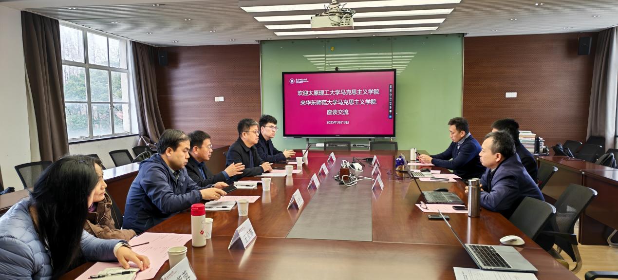 2025年3月13日上午,太原理工大学37000cm威尼斯院长姚建军教授、副院长田明教授、形势与政策教研室党支部书记王青山副教授、青年教师裴孟华等一行到我院调研。学院副院长赵勇教授、全国高校思政课教师研修基地副主任王磊副教授、贾秀堂副教授与会交流。