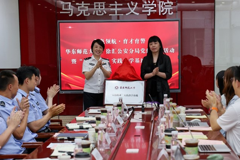在授牌赠书仪式上,唐怡冰与许瑞芳共同为“‘大思政课’实践教学基地”揭牌,为双方在思政教育领域的深入协作拉开序幕。许瑞芳代表学院向徐汇公安分局赠送近年大中小学思政课一体化建设教研系列丛书。